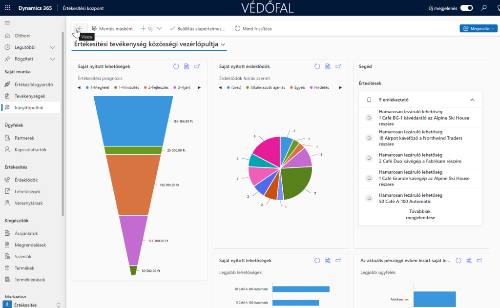A Business Central CRM modulja alapvető értékesítési funkciókat biztosít, melyek a következők: